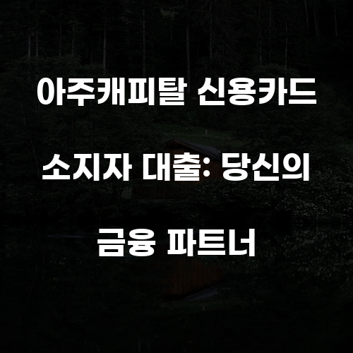금융의 바다에서 당신의 항해를 돕는 아주캐피탈은, 당신이 원하는 방향으로 나아갈 수 있도록 지원하는 든든한 파트너입니다. 당신의 재정적인 목표를 이루기 위해, 지금 바로 아주캐피탈의 신용카드 소지자 대출을 검토해 보세요. 당신의 미래는 당신의 선택에 달려 있습니다.