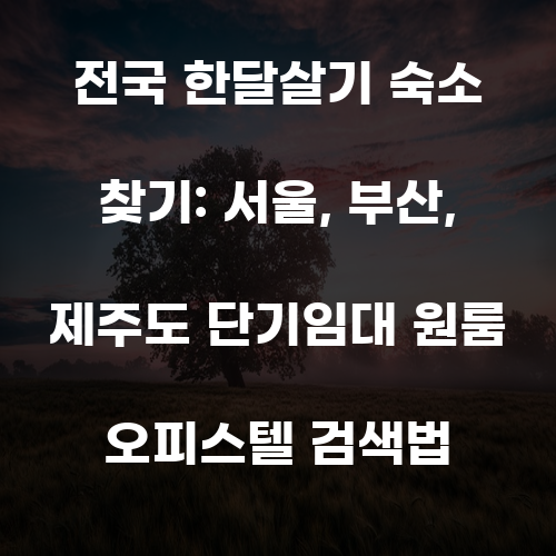 서울, 부산, 제주도에서의 한 달 살기는 단순한 여행이 아닙니다. 이는 새로운 경험과 삶의 방식을 탐구하는 과정입니다. 적절한 숙소를 선택하는 것은 이러한 경험을 더욱 풍부하게 만들어줄 것입니다. 다양한 숙소 옵션과 검색 방법을 활용하여, 여러분의 한 달 살기를 위한 완벽한 공간을 찾아보세요.