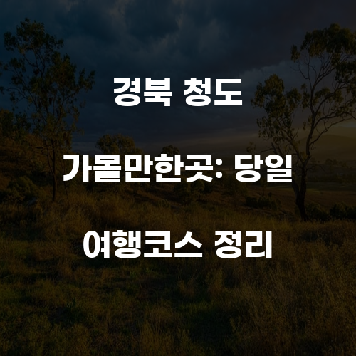 경북 청도는 대구와 가까운 위치 덕분에 당일 여행지로 많은 사랑을 받고 있으며, 다양한 자연과 역사적 장소들이 어우러져 있습니다. 새마을운동 발상지기념공원과 청도 수리덤 오토캠핑장은 가족과 함께 소중한 시간을 보낼 수 있는 최적의 장소입니다. 여름철 물놀이와 캠핑을 즐기며, 자연 속에서의 힐링을 경험해보세요. 청도에서의 하루는 여러분의 마음에 오래도록 남을 특별한 기억이 될 것입니다.